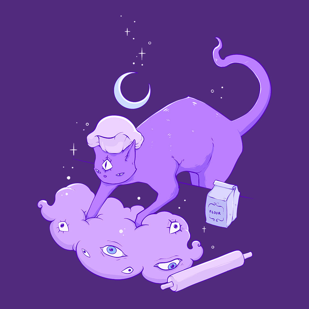 Matte art print of my original illustration of a cute strange cat making biscuits.