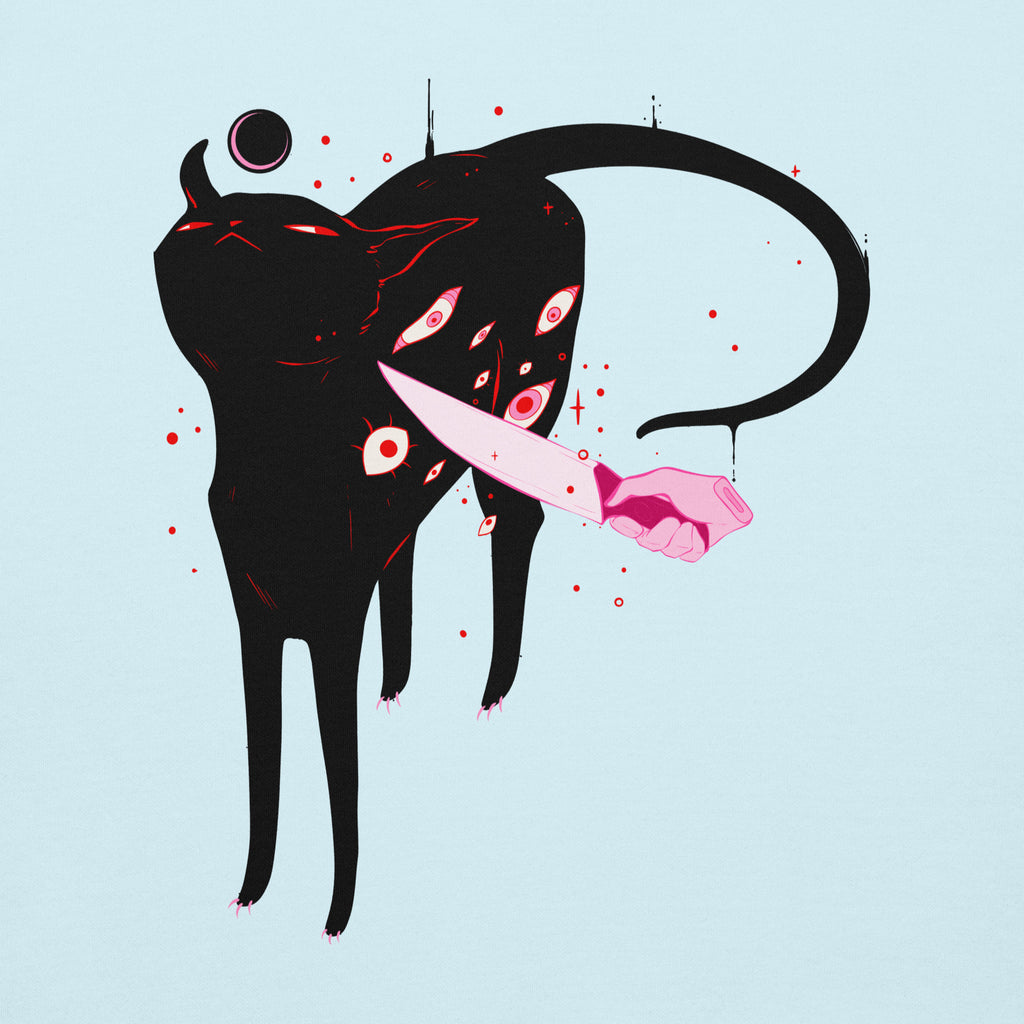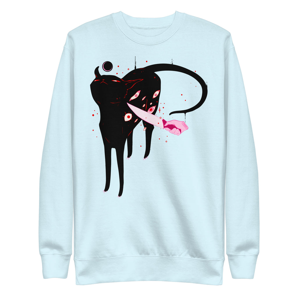 Sweatshirt featuring my original artwork of a black cat, inspired by the smug cat memes.